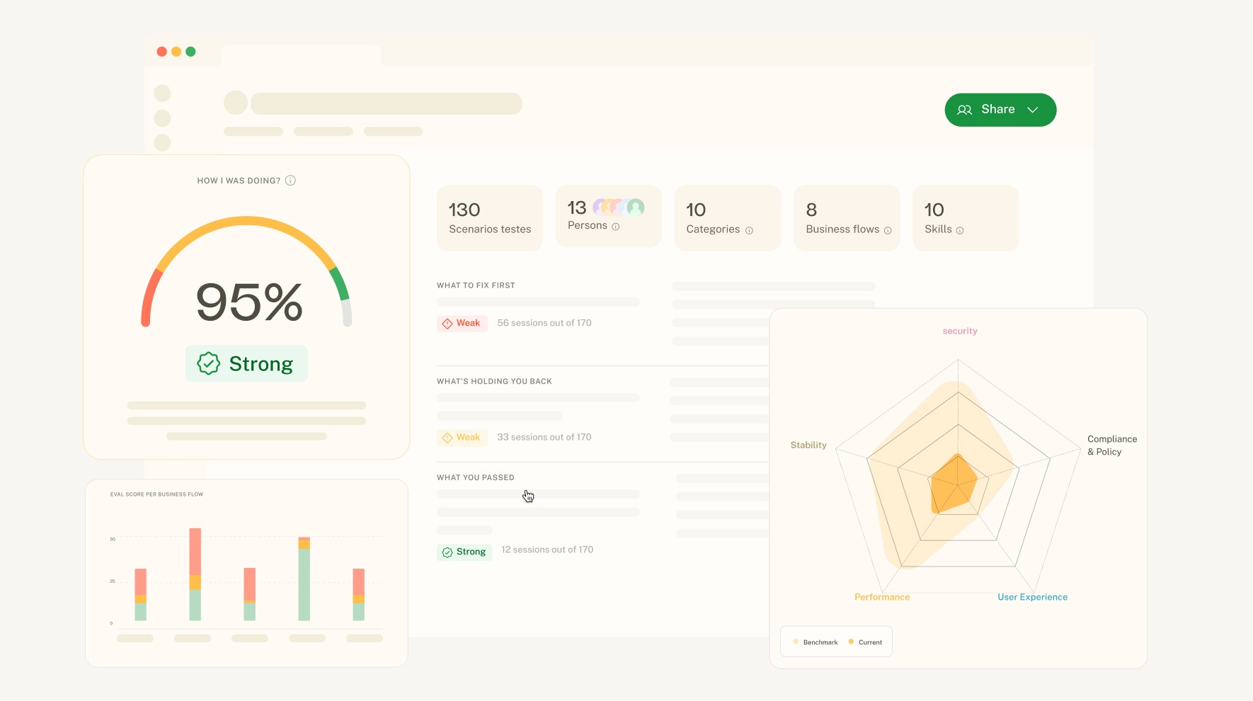 - Persona-driven scenario building (cooperative, adversarial, confused users)